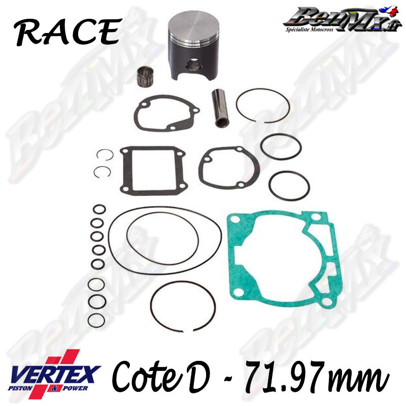 Inclus dans ce kit : - piston - clips de piston - axe de piston - segments - joint haut moteur - cage à aiguilles