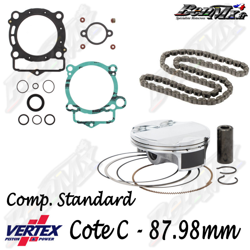 Kit piston VERTEX Forgé compression standard 12,3:1 + Joints haut moteur + Chaine de distribution - Alésage 87,98mm - KTM 350 EXC-F 2012/2016 - HUSQVARNA 350 FE 2014/2016 - ref: VTKTC23711C