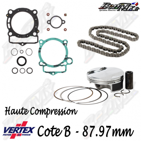 Kit piston VERTEX Forgé Haute compression 12,8:1 + Joints haut moteur + Chaine de distribution - Alésage 87,97mm - KTM 350 EXC-F 2012/2016 - HUSQVARNA 350 FE 2014/2016 - ref: VTKTC23641B
