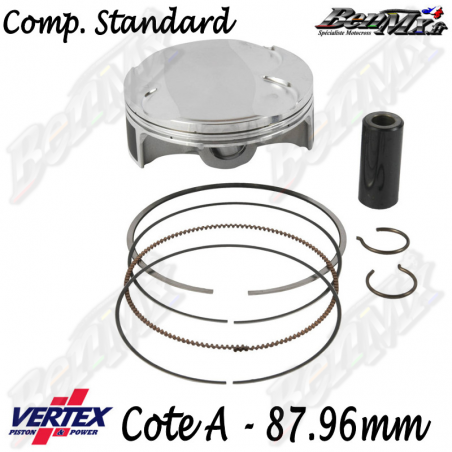 Les pistons Vertex pour moteurs 4 temps sont livrés forgé à chaud en alliage aéronautique 2618, un produit de très haute qualité qui garantit des qualités résistance et durabilité supérieures. Vertex applique ensuite des profils exclusifs et des conformations de tête dérivés du développement réalisé par les Teams, le tout dans le but de maximiser la puissance, le couple et les performances en général, tout en réduisant la consommation d'huile.