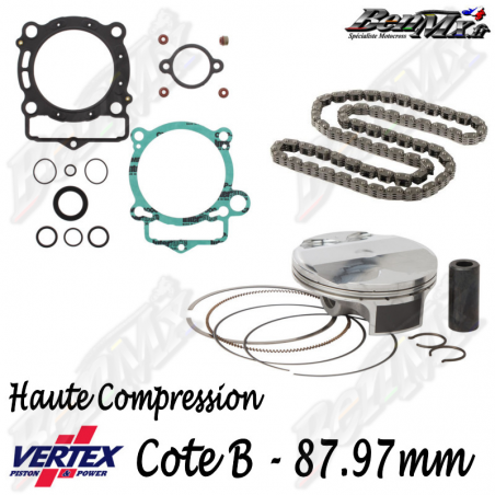 Kit piston VERTEX Forgé Haute compression 14,1:1 + Joints haut moteur + Chaine de distribution - Alésage 87,97mm - KTM 350 SX-F 2013/2015 - HUSQVARNA 350 FC 2014/2015 - ref: VTKTC23848B