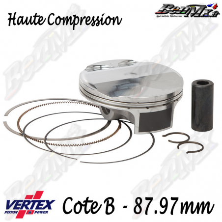 Les pistons Vertex pour moteurs 4 temps sont livrés forgé à chaud en alliage aéronautique 2618, un produit de très haute qualité qui garantit des qualités résistance et durabilité supérieures. Vertex applique ensuite des profils exclusifs et des conformations de tête dérivés du développement réalisé par les Teams, le tout dans le but de maximiser la puissance, le couple et les performances en général, tout en réduisant la consommation d'huile.