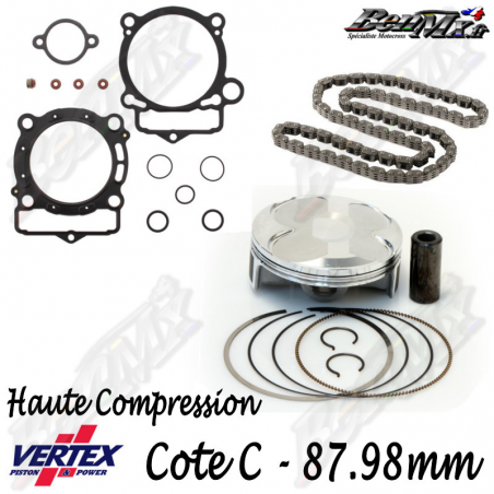 Kit piston VERTEX Forgé Haute compression 15,1:1 + Joints haut moteur + Chaine de distribution - Alésage 87,98mm - KTM 350 SX-F 2016/2018 - HUSQVARNA 350 FC 2016/2018 - ref: VTKTC24116C