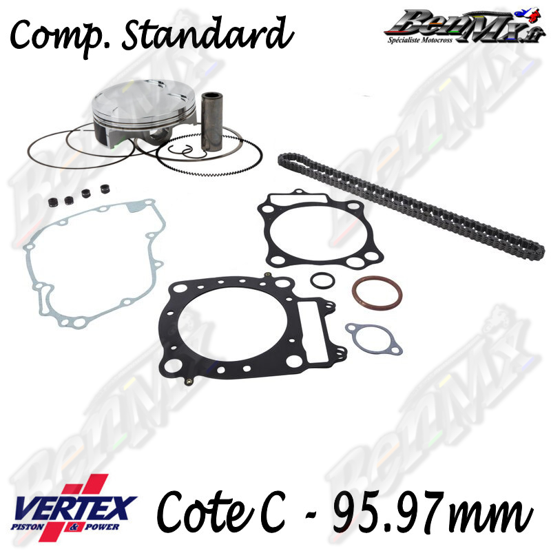 Kit piston VERTEX Forgé + Joints haut moteur + Chaine de distribution Cote C 95,97mm - comp 11.5:1 - HONDA 450 CRF 2002/2003