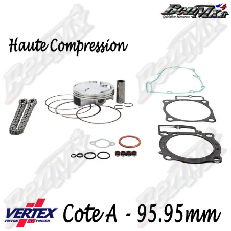 Kit piston VERTEX Forgé Haute compression + Joints haut moteur + Chaine de distribution Cote A 95,95mm - comp 12.9:1 - HONDA 450 CRF 2009/2012