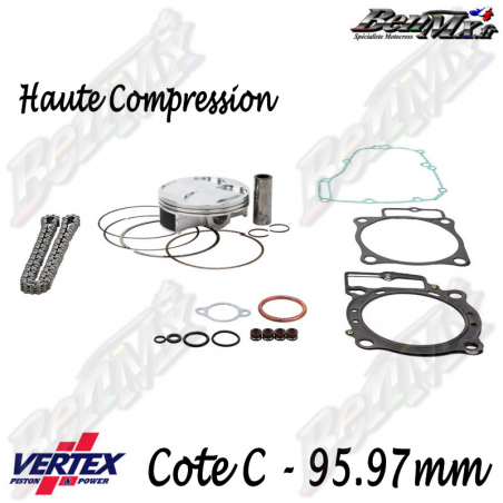 Kit piston VERTEX Forgé Haute compression + Joints haut moteur + Chaine de distribution Cote C 95,97mm - comp 12.9:1 - HONDA 450 CRF 2009/2012