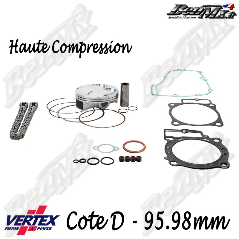 Kit piston VERTEX Forgé Haute compression + Joints haut moteur + Chaine de distribution Cote D 95,98mm - comp 12.9:1 - HONDA 450 CRF 2009/2012