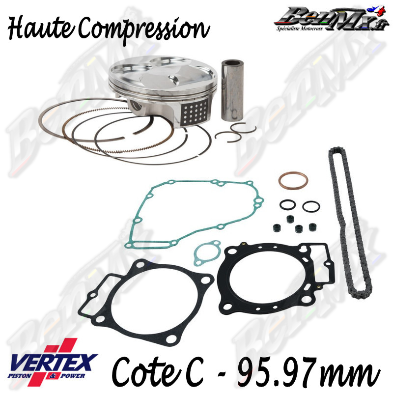 Kit piston VERTEX Forgé Haute compression + Joints haut moteur + Chaine de distribution Cote C 95,97mm - comp 13.2:1 - HONDA 450 CRF 2013/2016