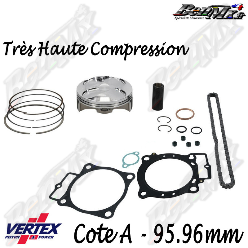 Kit piston VERTEX Forgé Très Haute compression + Joints haut moteur + Chaine de distribution Cote A 95,96mm - comp 14.5:1 - HONDA 450 CRF 2021/2025