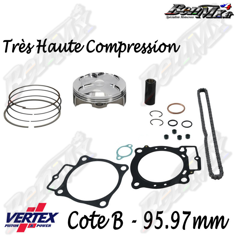 Kit piston VERTEX Forgé Très Haute compression + Joints haut moteur + Chaine de distribution Cote B 95,97mm - comp 14.5:1 - HONDA 450 CRF 2021/2025