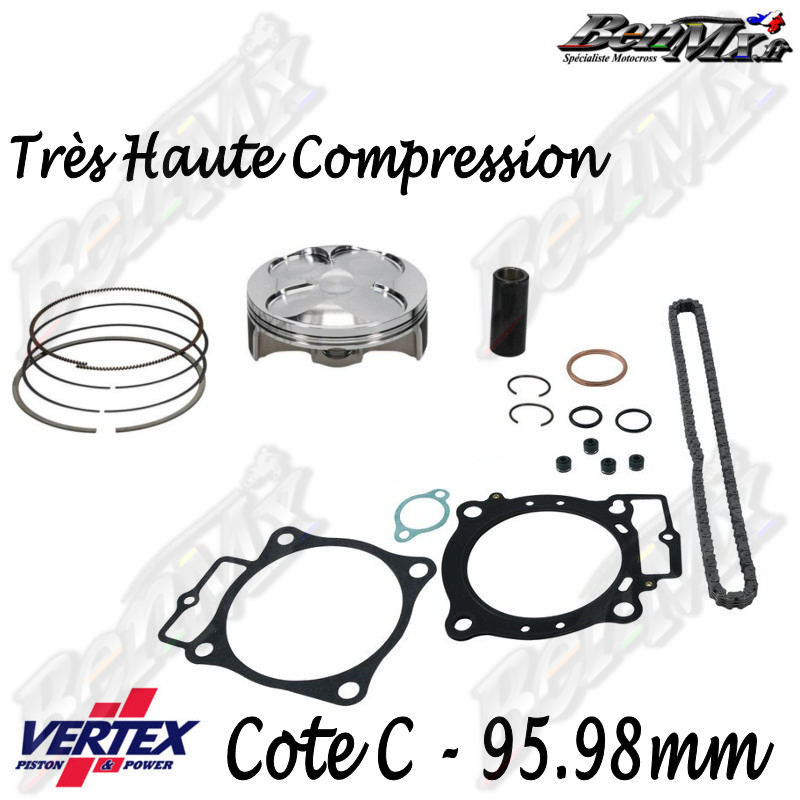 Kit piston VERTEX Forgé Très Haute compression + Joints haut moteur + Chaine de distribution Cote C 95,98mm - comp 14.5:1 - HONDA 450 CRF 2021/2025
