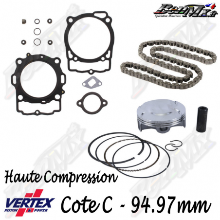 Kit piston VERTEX Forgé Haute compression 12,4:1 + Joints haut moteur + Chaine de distribution - Alésage 94,97mm - KTM 450 EXC-F 2012/2016 - HUSQVARNA 450 FE 2014/2016 - ref: VTKTC23860C