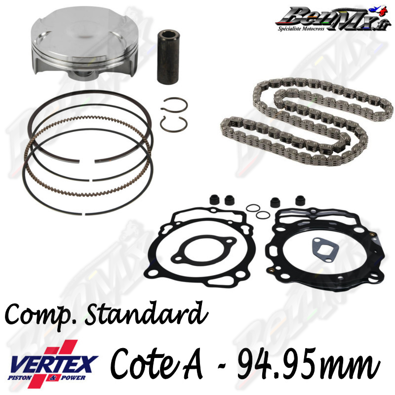 Kit piston VERTEX Forgé compression standard 11,8:1 + Joints haut moteur + Chaine de distribution - Alésage 94,95mm - KTM 450 EXC-F 2017/2019 - HUSQVARNA 450 FE 2017/2019 - ref: VTKTC24209A
