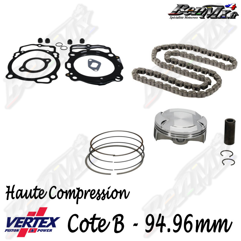 Kit piston VERTEX Forgé Haute compression 12,8:1 + Joints haut moteur + Chaine de distribution - Alésage 94,96mm - KTM 450 EXC-F 2017/2019 - HUSQVARNA 450 FE 2017/2019 - ref: VTKTC24211B