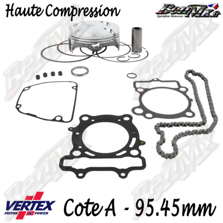 Kit piston VERTEX Forgé Haute compression + Joints haut moteur + Chaine de distribution Cote A 95,45mm - comp 13.0:1 - SUZUKI 450 RMZ 2005/2007