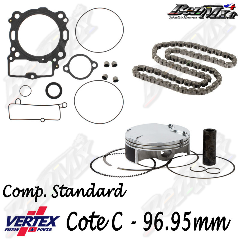 Kit piston VERTEX Forgé compression standard 12,5:1 + Joints haut moteur + Chaine de distribution - Alésage 96,95mm - KTM 450 SX-F 2007/2012 - ref: VTKTC23342C