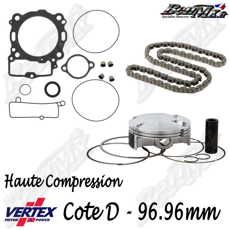 Kit piston VERTEX Forgé Haute compression 13,2:1 + Joints haut moteur + Chaine de distribution - Alésage 96,96mm - KTM 450 SX-F 2007/2012 - ref: VTKTC23343D