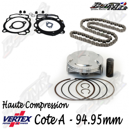 Kit piston VERTEX Forgé Haute compression 13,6:1 + Joints haut moteur + Chaine de distribution - Alésage 94,95mm - KTM 450 SX-F 2016/2018 - HUSQVARNA 450 FC 2016/2018 - ref: VTKTC24112A