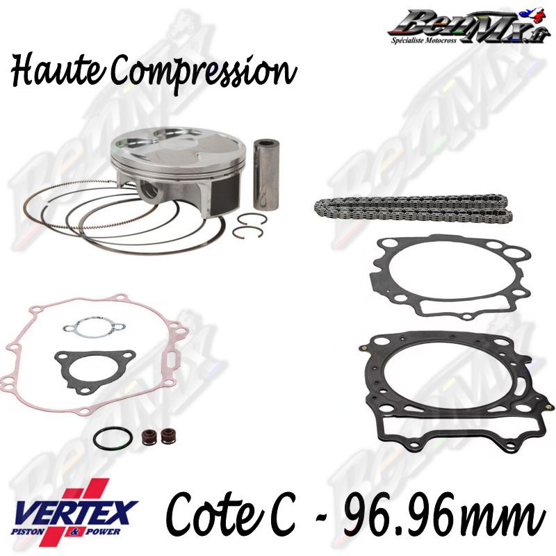 Kit piston VERTEX Forgé Haute compression + Joints haut moteur + Chaine de distribution Cote C 96,96mm - comp 13.5:1 - YAMAHA 450 YZF 2014/2017