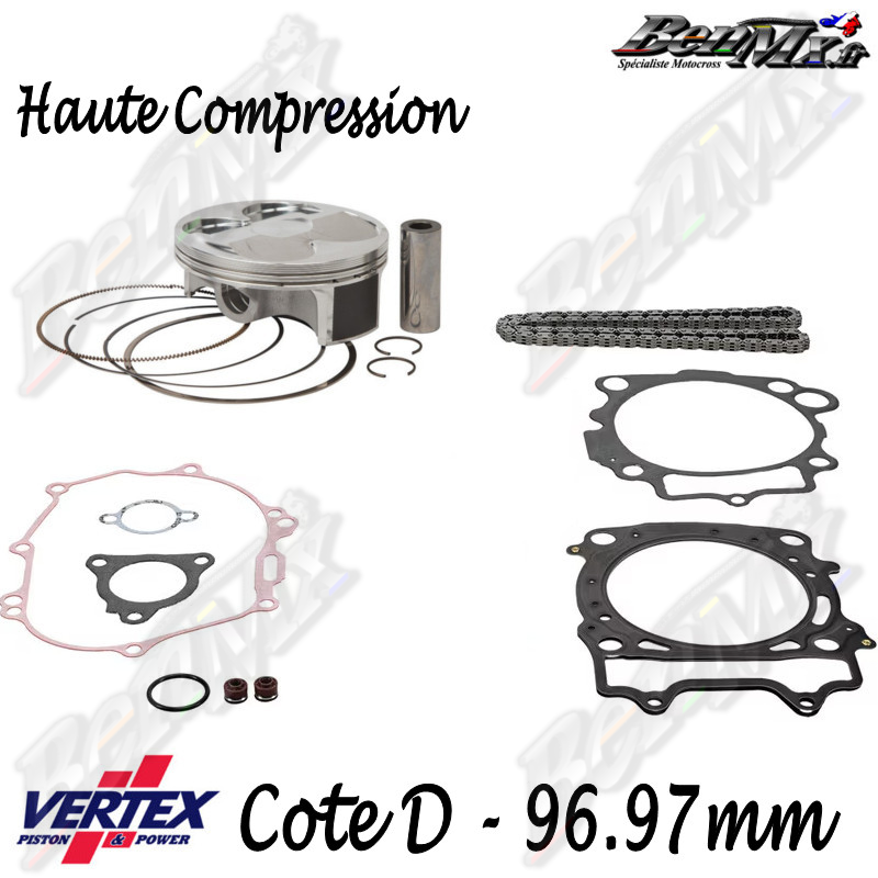 Kit piston VERTEX Forgé Haute compression + Joints haut moteur + Chaine de distribution Cote D 96,97mm - comp 13.5:1 - YAMAHA 450 YZF 2014/2017