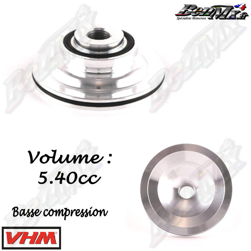 VHM - Dôme basse compression - Volume 5,40cc - KTM 65 SX 2013/2023 - HUSQVARNA 65 TC 2017/2023 - GAS GAS 65 MC 2021/2023 Les culasses VHM de rechange dorées avec chambres de combustion interchangeables sont bien connues dans le monde de la course 2 temps. Elles sont spécialement développées pour une puissance optimale pendant toute la course. La culasse comporte un conduit d'eau spécialement conçu pour un débit d'eau optimal. - Plus de puissance moteur - Meilleur transfert de chaleur - Chambres de combustion interchangeables