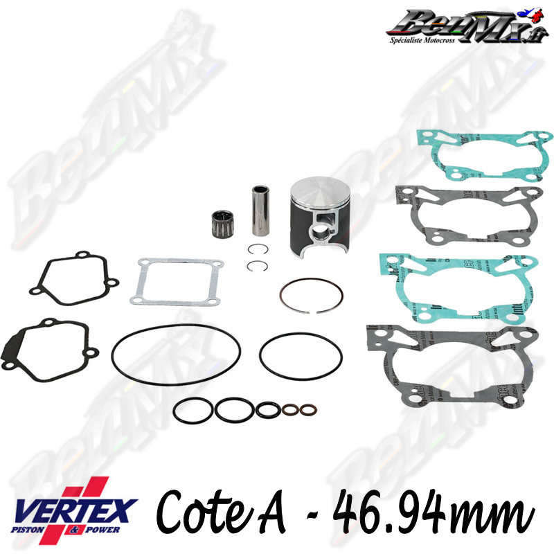 Inclus dans ce kit : - piston - clips de piston - axe de piston - segments - joint haut moteur - cage à aiguilles