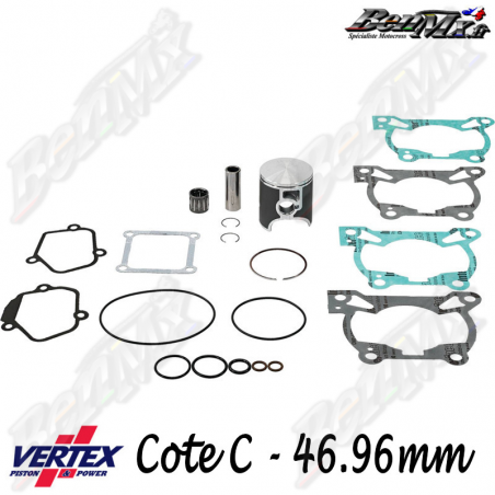 Inclus dans ce kit : - piston - clips de piston - axe de piston - segments - joint haut moteur - cage à aiguilles