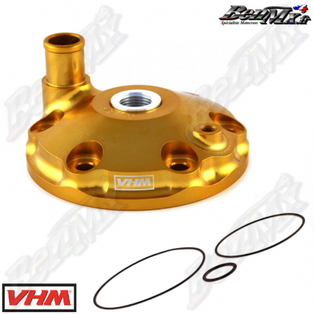 Les culasses VHM de rechange dorées avec chambres de combustion interchangeables sont bien connues dans le monde de la course 2 temps. Elles sont spécialement développées pour une puissance optimale pendant toute la course. La culasse comporte un conduit d'eau spécialement conçu pour un débit d'eau optimal. - Plus de puissance moteur - Meilleur transfert de chaleur - Chambres de combustion interchangeables