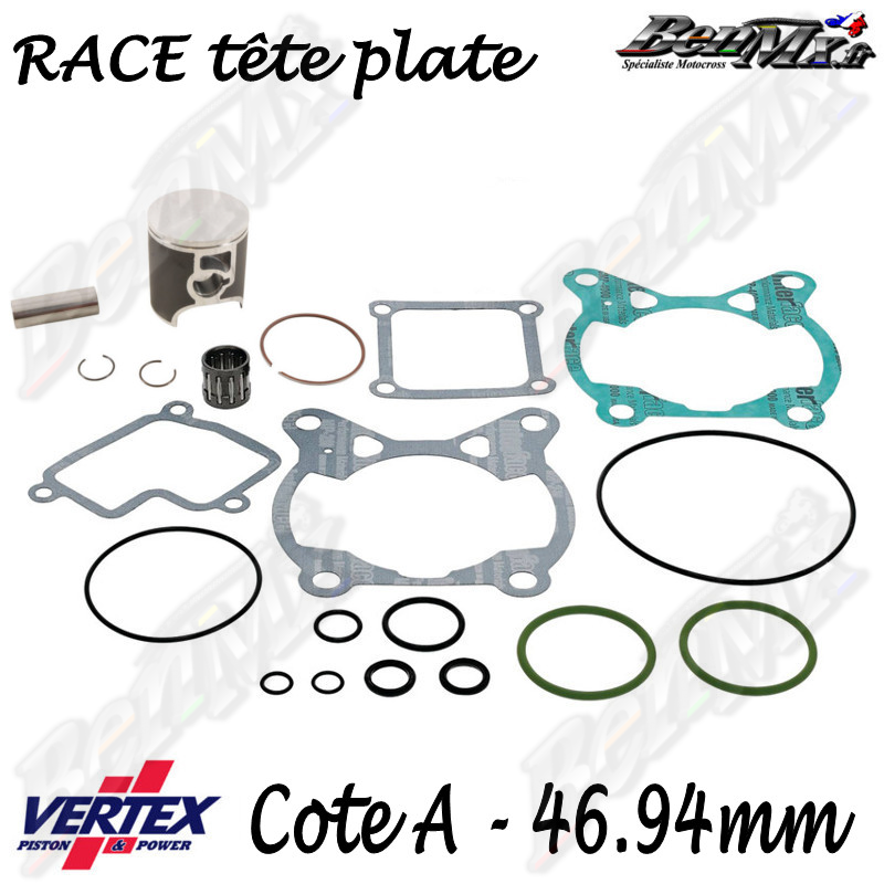 Inclus dans ce kit : - piston - clips de piston - axe de piston - segments - joint haut moteur - cage à aiguilles