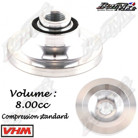 VHM - Dôme standard - Volume 8,00cc - KTM 85 SX 2004/2012 Les culasses VHM de rechange dorées avec chambres de combustion interchangeables sont bien connues dans le monde de la course 2 temps. Elles sont spécialement développées pour une puissance optimale pendant toute la course. La culasse comporte un conduit d'eau spécialement conçu pour un débit d'eau optimal. - Plus de puissance moteur - Meilleur transfert de chaleur - Chambres de combustion interchangeables