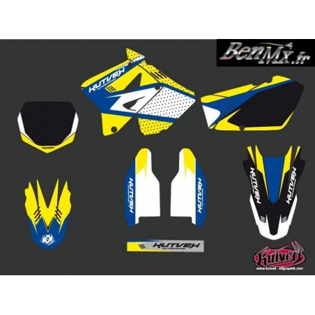 Le kit déco comprend: - Garde boue arrière - Plaques latérales - Boite à air - Ouies de radiateur Plaque avant - Garde boue avant - Protections de fourche - Bras oscillant