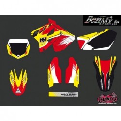 Le kit déco comprend: - Garde boue arrière - Plaques latérales - Boite à air - Ouies de radiateur Plaque avant - Garde boue avant - Protections de fourche - Bras oscillant