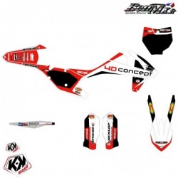 Le kit déco comprend: - Garde boue arrière - Plaques latérales - Boite à air - Ouies de radiateur Plaque avant - Garde boue avant - Protections de fourche - Bras oscillant