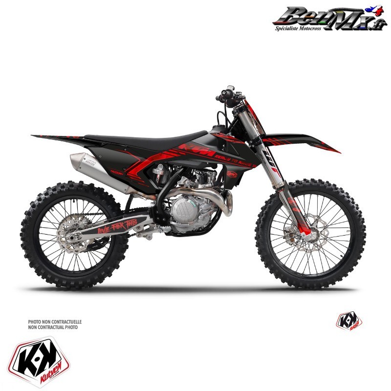Le kit déco comprend: - Garde boue arrière - Plaques latérales - Boite à air - Ouies de radiateur Plaque avant - Garde boue avant - Protections de fourche - Bras oscillant