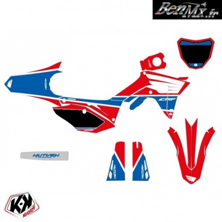 Le kit déco comprend: - Garde boue arrière - Plaques latérales - Boite à air - Ouies de radiateur Plaque avant - Garde boue avant - Protections de fourche - Bras oscillant