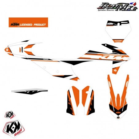 Le kit déco comprend: - Garde boue arrière - Plaques latérales - Boite à air - Ouies de radiateur Plaque avant - Garde boue avant - Protections de fourche - Bras oscillant