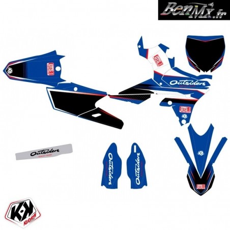 Le kit déco comprend: - Garde boue arrière - Plaques latérales - Boite à air - Ouies de radiateur Plaque avant - Garde boue avant - Protections de fourche - Bras oscillant