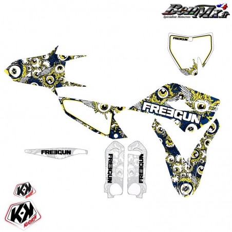 Kit déco complet Kutvek FREEGUN EYED HUSQVARNA FC 350 BLEU JAUNE 2019/2022