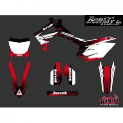 Le kit déco comprend: - Garde boue arrière - Plaques latérales - Boite à air - Ouies de radiateur Plaque avant - Garde boue avant - Protections de fourche - Bras oscillant