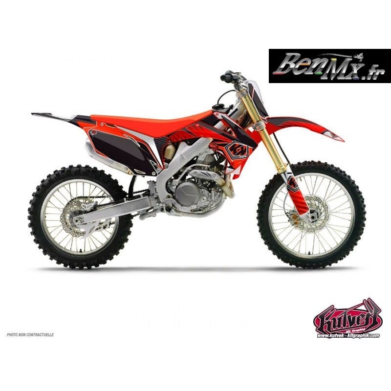 Le kit déco comprend: - Garde boue arrière - Plaques latérales - Boite à air - Ouies de radiateur Plaque avant - Garde boue avant - Protections de fourche - Bras oscillant