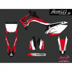 Le kit déco comprend: - Garde boue arrière - Plaques latérales - Boite à air - Ouies de radiateur Plaque avant - Garde boue avant - Protections de fourche - Bras oscillant