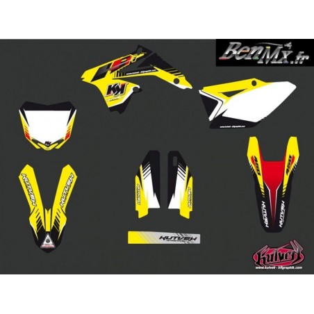 Le kit déco comprend: - Garde boue arrière - Plaques latérales - Boite à air - Ouies de radiateur Plaque avant - Garde boue avant - Protections de fourche - Bras oscillant