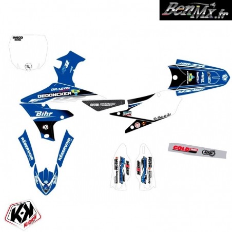 Le kit déco comprend: - Garde boue arrière - Plaques latérales - Boite à air - Ouies de radiateur Plaque avant - Garde boue avant - Protections de fourche - Bras oscillant