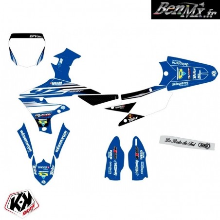 Le kit déco comprend: - Garde boue arrière - Plaques latérales - Boite à air - Ouies de radiateur Plaque avant - Garde boue avant - Protections de fourche - Bras oscillant