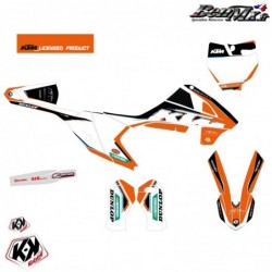 Le kit déco comprend: - Garde boue arrière - Plaques latérales - Boite à air - Ouies de radiateur Plaque avant - Garde boue avant - Protections de fourche - Bras oscillant