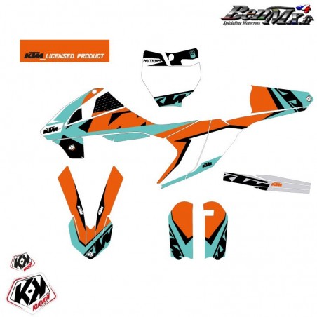 Le kit déco comprend: - Garde boue arrière - Plaques latérales - Boite à air - Ouies de radiateur Plaque avant - Garde boue avant - Protections de fourche - Bras oscillant