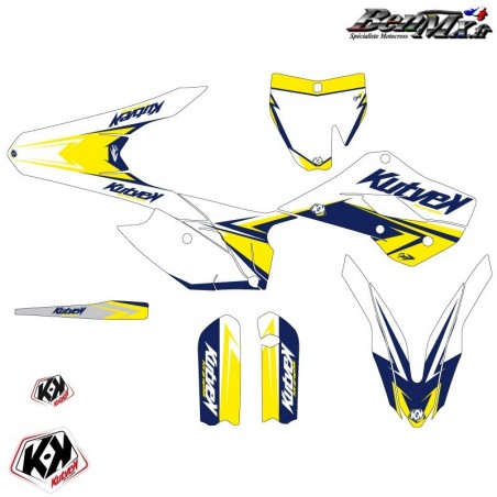 Le kit déco comprend: - Garde boue arrière - Plaques latérales - Boite à air - Ouies de radiateur Plaque avant - Garde boue avant - Protections de fourche - Bras oscillant