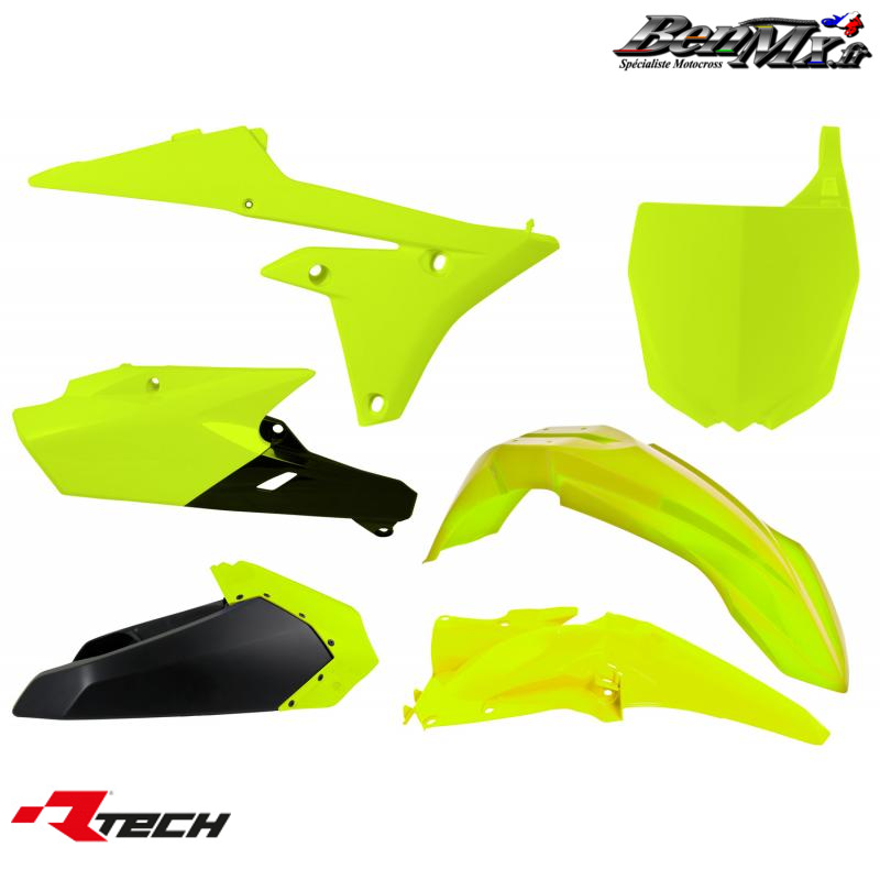 Kit plastiques + cache boite à air R-Tech Jaune Fluo - YAMAHA 250 YZF 2014/2018 - 450 YZF 2014/2017