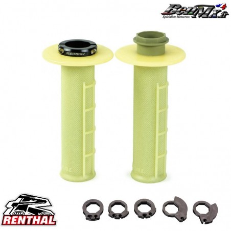 Les poignées Renthal MX Lock-On sont le dernier développement technique du fabricant de poignées MX le plus performant au monde. Synonyme de succès, Renthal a transposé les composés et motifs les plus populaires dans une poignée Motocross Lock-On. L'offre initiale comprend les quatre composés les plus populaires. Soft, Medium, Aramid et Ultratacky dans les motifs Full Diamond, Half Waffle et Tapered.