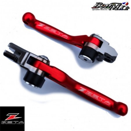 Leviers retournables ZETA Rouge (la paire) - Livré avec un bras de levier anodisé de couleur forgé durable. Le levier se replie vers l'extérieur pour éviter la casse en cas de collision. L'adaptateur de levier est usiné CNC ultraprécis en aluminium de haute qualité pour une conception ultra légère.